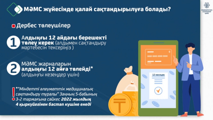 1⃣ МӘМС жарналарын ай сайын төлеңіз. Бұл ретте, егер пациенттің алдыңғы 12 ай үшін берешегі болса, оны өтеу қажет