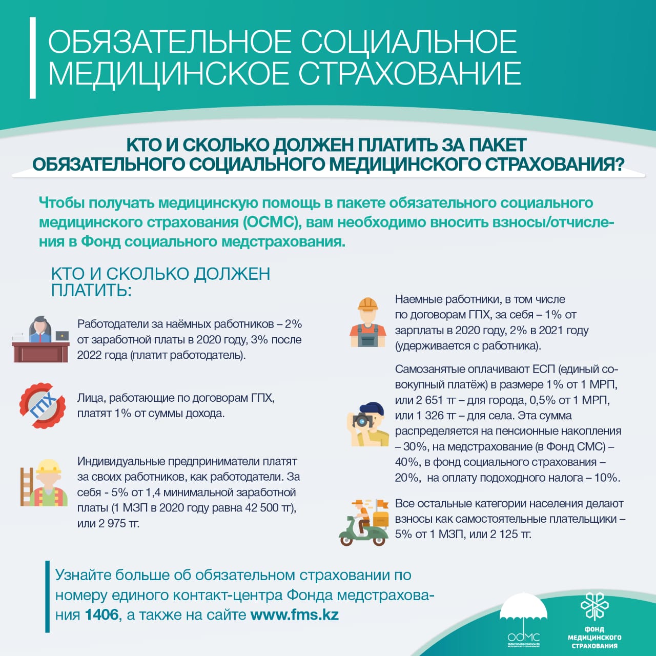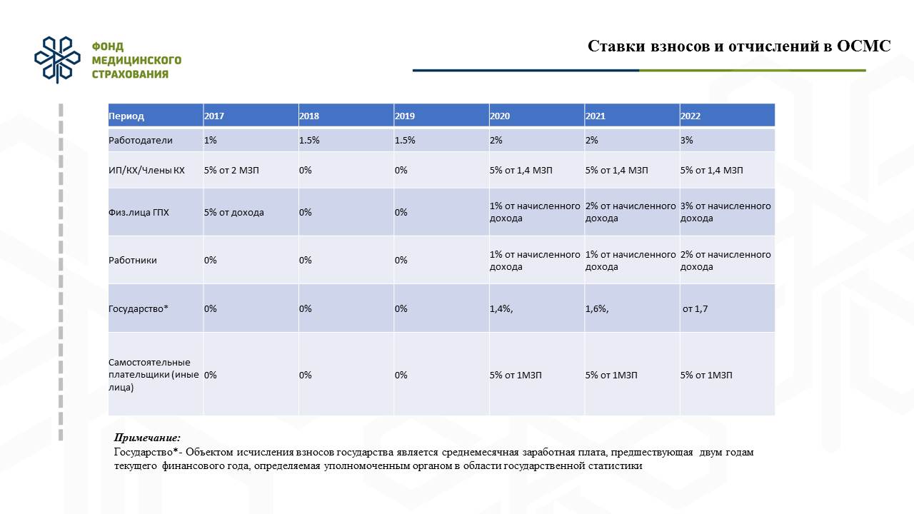 2020 жылдан жұмыс берушілер өз қызметкерлері үшін өз есебінен 2%, жұмыс беруші жалақысынан 1% жарналарды Қорға аударады.