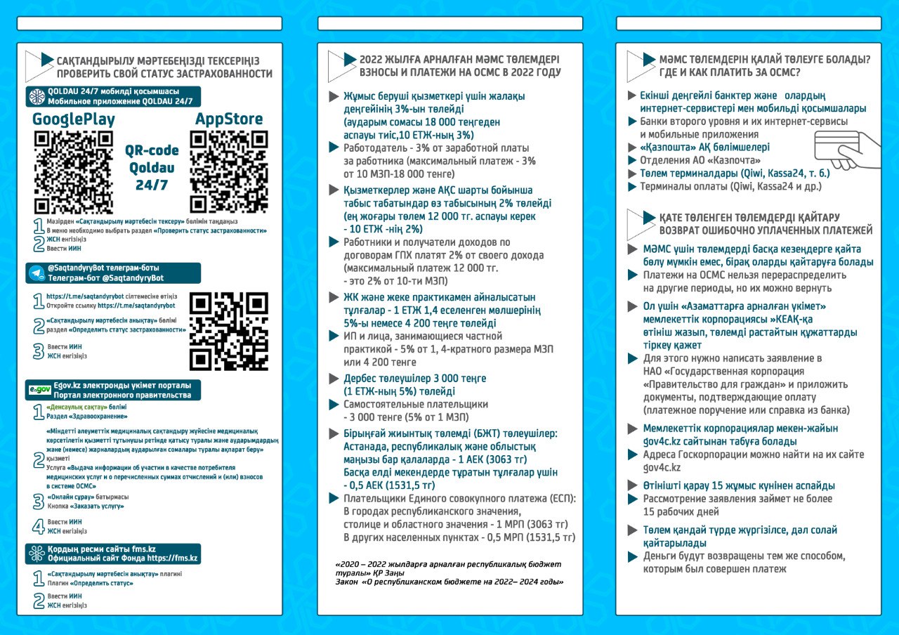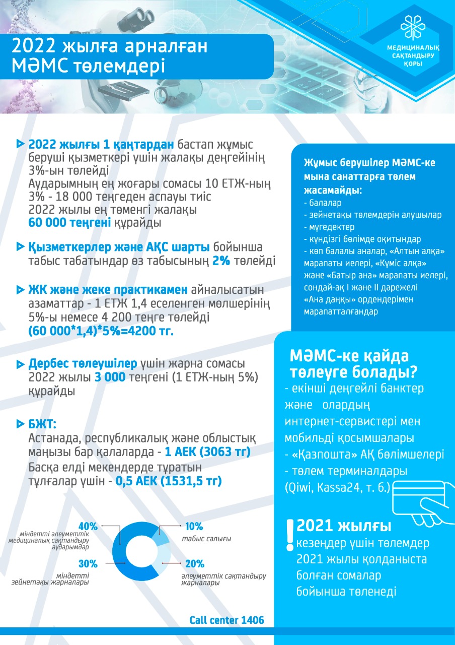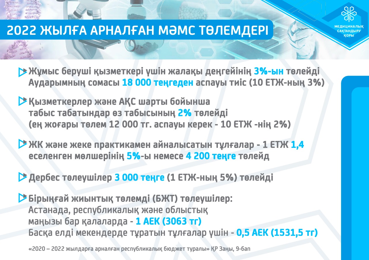 ✅ Дербес төлеушілер МӘМС-ке ЕТЖ-дан 5% мөлшерінде жарна төлейді. 2022 жылы бұл сома 3000 теңгені құрайды