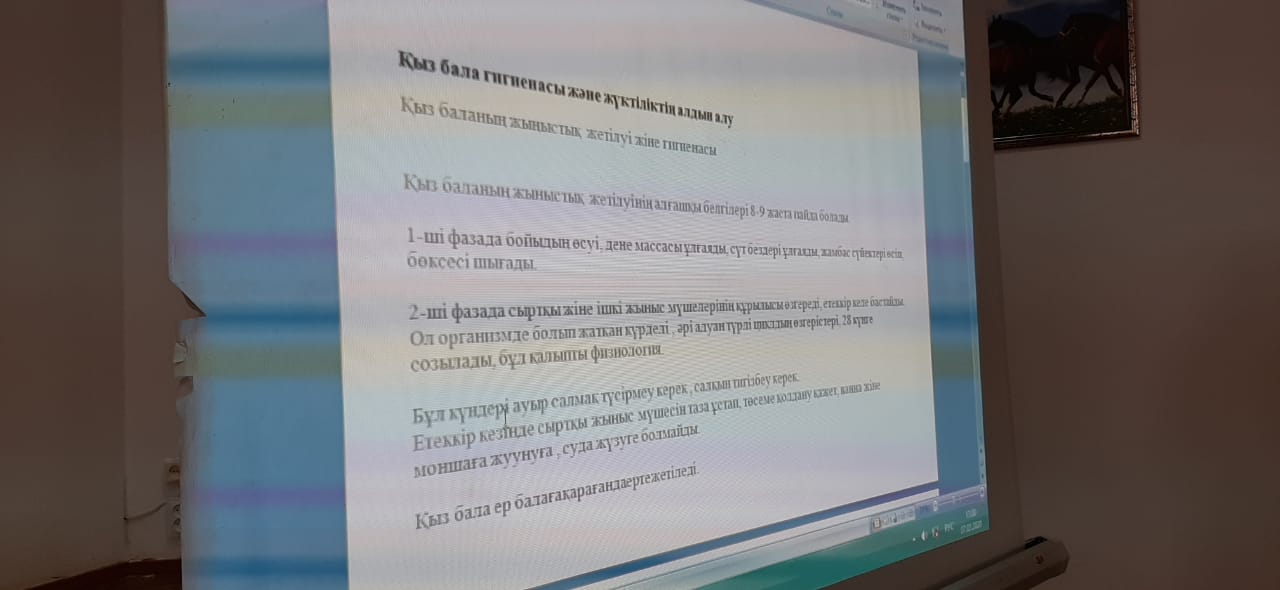 Т.Жароков атындағы орта мектебінде 07.02 күні 9, 10, 11 сынып қыздарына Ақбаян тобының жетекшісі Ибатова Бибітгүлдің ұйымдастыруымен «Қыз бала гигиенасы және жүктіліктің алдын алу» тақырыбында қыздар жиналысы өтті.